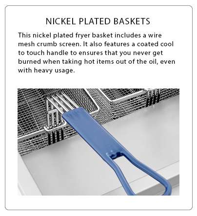 CookRite Fryer, natural gas, floor model, 15-3/5"W x 30-1/10"D x 44-2/5"H, 50 lb. capacity, (4) burners, milivolt control, 200 degrees FahrenheitF- 400 degrees FahrenheitF temperature range, , (2) nickel plated baskets with coated handles, basket hanger, oil cooling zone seated in the bottom of the tank, stainless steel structure, (4) casters, cETLus, ETL-Sanitation